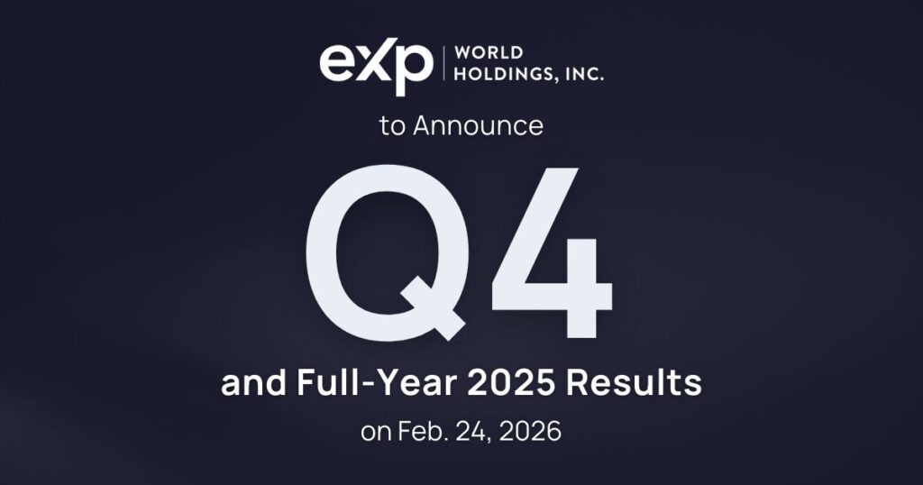 BELLINGHAM, Wash. â January 27, 2026 â eXp World Holdings, Inc. (Nasdaq: EXPI), the holding company for eXp RealtyÂŽ, FrameVR.io and SUCCESSÂŽ Enterprises, today announced it expects to report its fourth quarter and full-year 2025 financial results on Tuesday, February 24, 2026.